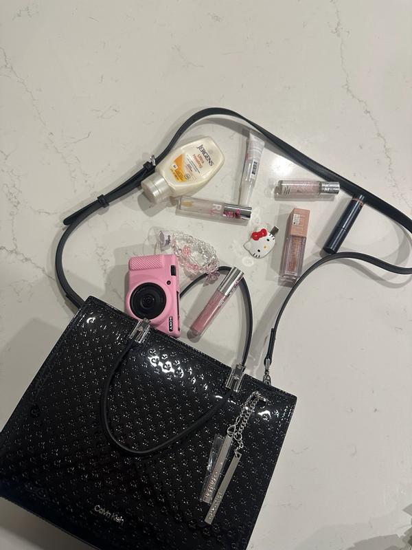I received Calvin Klein Berne Satchel as part of an Influenster campaign. I was ready to go to the airport. On the inside I had my makeup bag and passport and wallet, they fit perfect into the purse. It looks so pretty and also perfect size to everyday use.