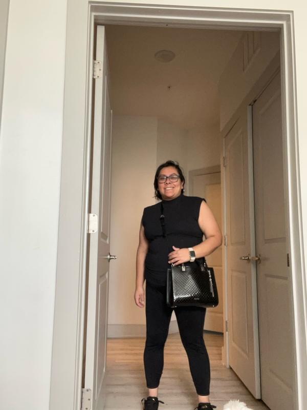 I’m obsessed with my new purse! I love the shine on this bag. It grabs attention and I get complimented on it. It’s durable and has great storage. It’s the perfect size!
