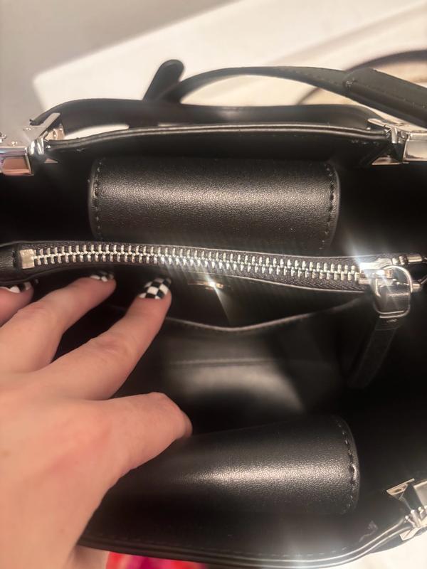 Such a beautiful purse. Love the texture .easy to clean so stains aren’t a problem . Looks like a luxury purse . Nice silver hardware love that’s it solid and don’t feel flimsy . Normal I’m a gold girly but I like it so much I’ll mix metals . It had a pocket in the middle slightly like a wallet built in . I wish it it more pockets inside . The divider/pocket separate things good but small things tend to slip in between . Perfect size for my everyday things . The small details on the outside are unique. The handle with the option for crossbody chefs kiss . It’s so many good things I can say about this bag . Highly recommend