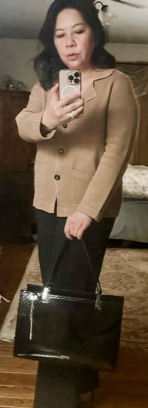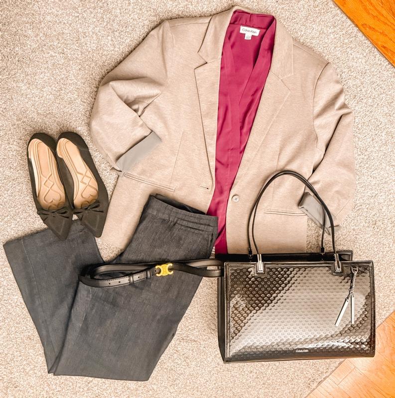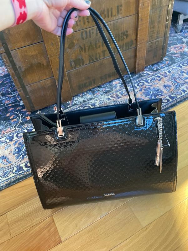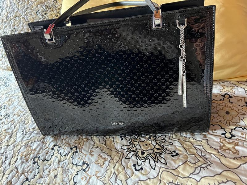 This is the PERFECT bag for me and is a gorgeous addition to my career wardrobe. It’s in basic black, but it’s anything but basic! The metal accents at the base of the handles gives it a bit of an edge and the attached silver charm honors the bag charm aesthetic these days without being “too” trendy. The subtle embedded CK monogram logo adds a bit of interesting texture to the patent leather surface. This is a structured bag with two main compartments, with each having their own magnetic closure. I can easily fit my 13-inch laptop into one compartment. There is a center compartment that is zippered for additional security. I carry this into the office on my rail commute into the city, and it always looks sharp while being functional at the same time. I also use this to carry my portable monitor, laptop and planner between offices, and this bag makes me look very professional and organized walking into conference rooms prior to making presentations. I highly recommend this bag if you’re looking for a quality bag that will help you make a good impression!