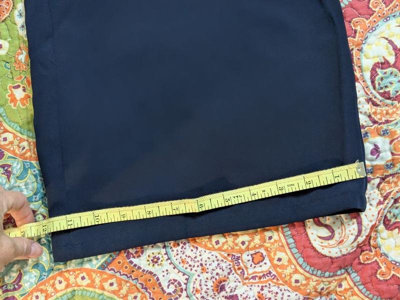 Pretty good quality, material is thick and flowy at the same time and seems to be well constructed. Color is a nice navy and goes along with almost anything. Sizing is true to size and allows for some extra room if I eat bigger dinners haha. Is good for any casual or more formal event.