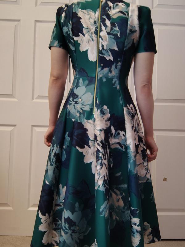 Tried it on for a family wedding, and it's good, but not as flattering for my shape as I was hoping for. The slight puff on the top of the sleeves was a little annoying, but not terrible. The material is also pretty thick so while good for cooler events, it's not as versatile for the warmer months (in my opinion). I loved the pattern even though it leans more green than the pictures on the website show. I wish the brand made more floral patterns like this.