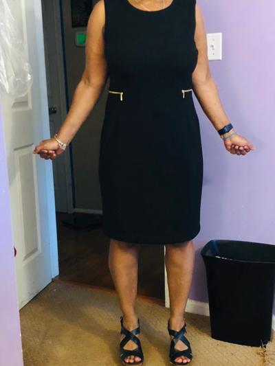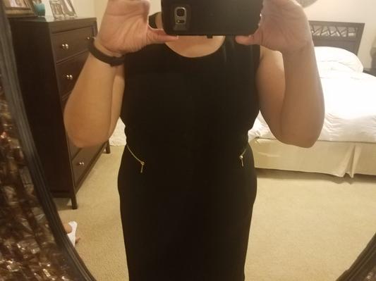 I like that this dress is different from any of the other dresses I have. I have purchased several other Calvin Klein dresses which I have loved, however, I was not a huge fan of this particular dress. I thought this would just be a standard staple black dress and that was exactly what it was. I dislike the fact that the material is thick that it will not be fit to wear in warmer weather. The zippers on the sides of the dress fooled me into thinking that they were pockets which I was really excited about since most dresses do not have pockets. Overall, this dress looked okay on me, but I do not think I would I would wear it any time soon.