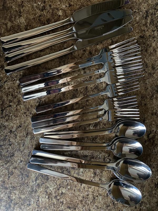 We absolutely love this set. It is high quality, beautifully styled and weighted well. Washes easily, beautiful and makes meals appetizing. Highly recommended if you are looking for a good-quality, classic-style silverware set.
