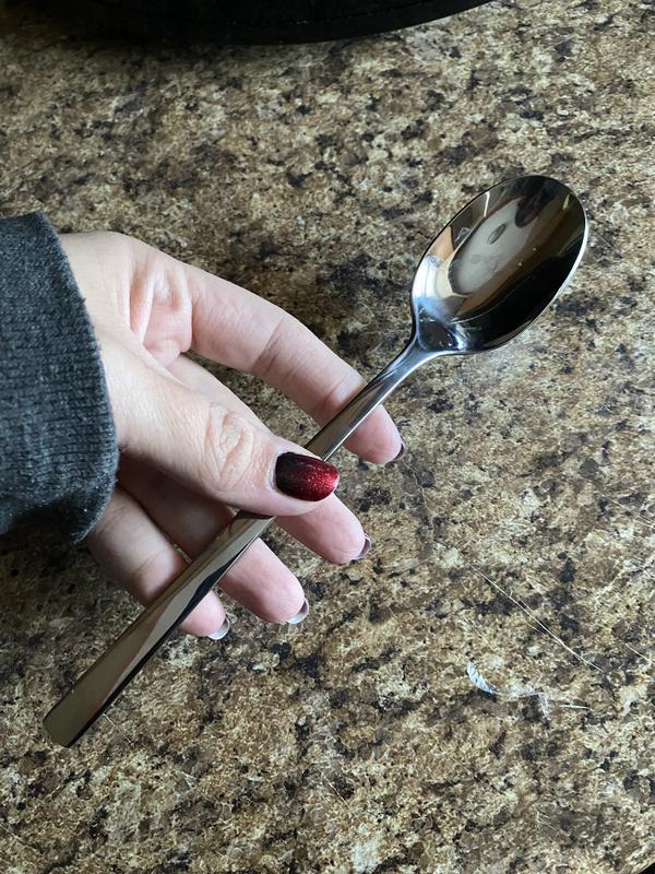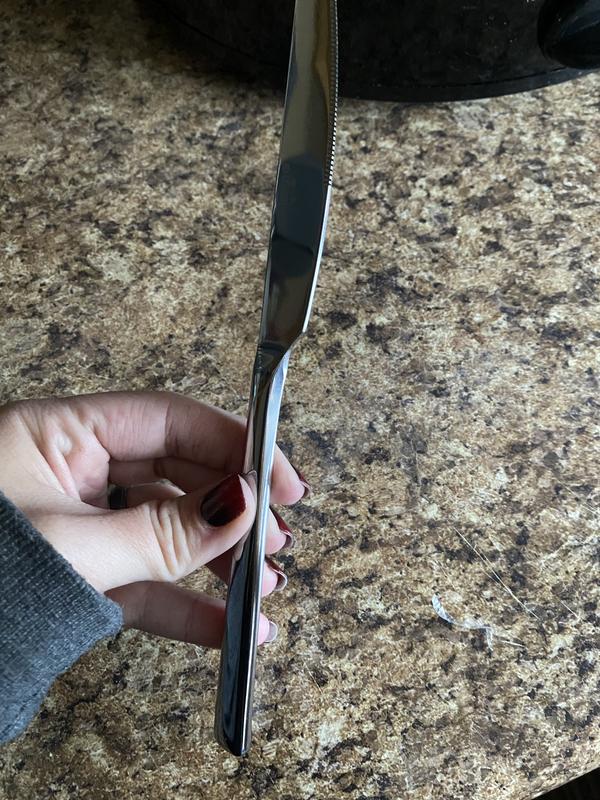 This style is very slim and elegant, but still feels substantial to hold. I like the way I can hold them easily when using, they are so well balanced. The shape of the spoon bowl is nice too - according to my son, it’s just the right size for cereal. Butter knife has a distinctive flat top on knife end which looks really nice at a plate setting. I am very pleased with this set. Five stars!!