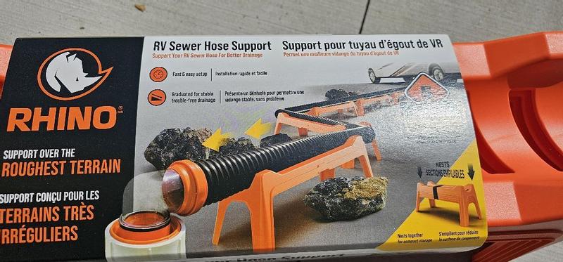 This product is very good! Does exactly what it says it is supposed to do and does not make the sewer pipes tip over. It is very sturdy and not flimsy. The only thing that is the downside it it is quite bulky and take up a lot of space when transporting in an RV that already doesn’t have much space. If it collapsed down small it would receive a 5.