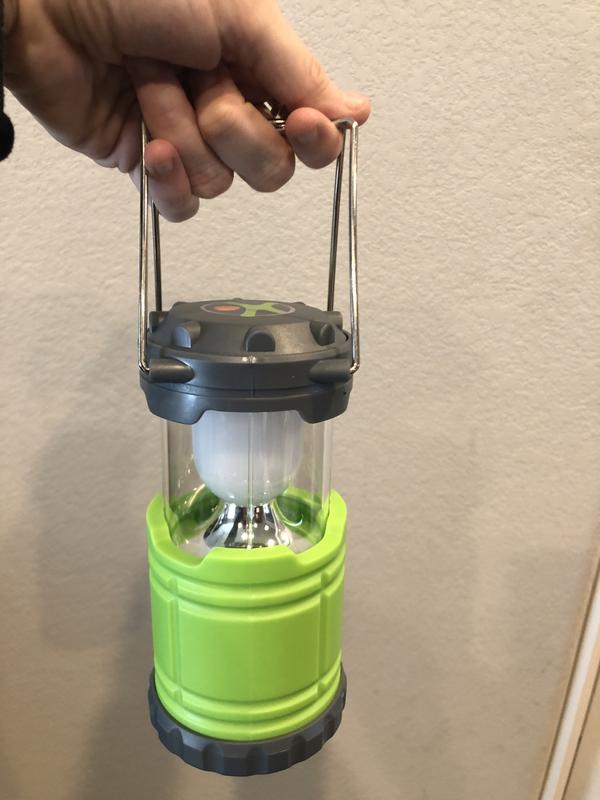 This is such a well designed lantern. The light comes on when the child pulls the top of the lantern up. It has brackets on the top for your child to hold or hand while exploring. There is a hidden compartment in the top to keep small treasures. This is durable and bright enough for any child to explore the outdoors or use while camping with the family. Love it