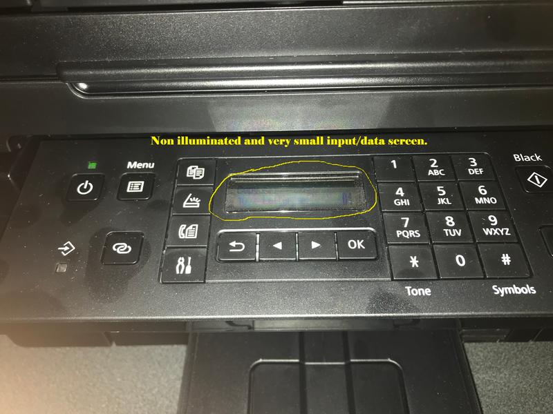 Screen is virtually unreadable, tiny, not backlit or color. Normal printing is fine, but photo printing is a disaster - faint and looks like you are looking through fog. Certainly not what I expected from Canon. Couldn't locate any on-line help to rectify photo printing issues. The scanner works fine as does the sheet feeder.