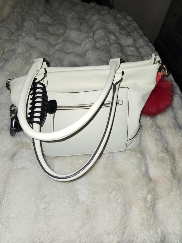 Has lots of pockets and zippered sections for storage space. The across the shoulder removable strap is perfect for traveling. The sleek design and soft leather feel, makes it a must have fashion statement, thats available in a variety of colors.