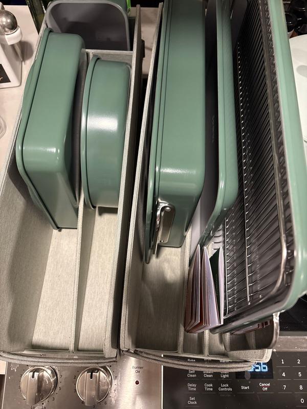 The pans are cute, easy to clean, and make baking easier. I love that it came with the organizer.