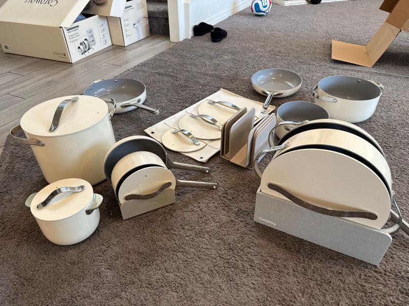 We could not be happier with our Caraway set. We cook for a crowd all the time and have been long-time All Clad fans. It’s hard to believe how well these conduct heat and wash clean. It’s made cooking and cleaning up much easier.