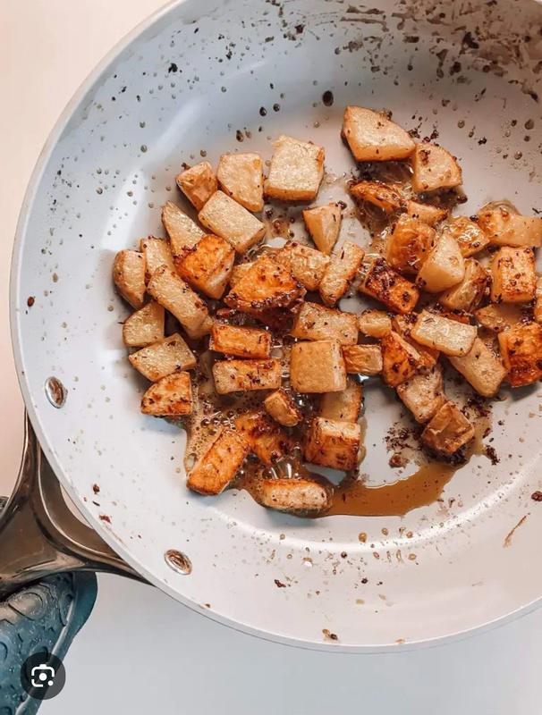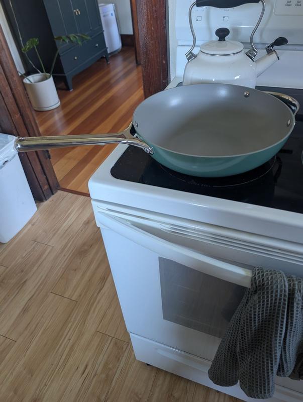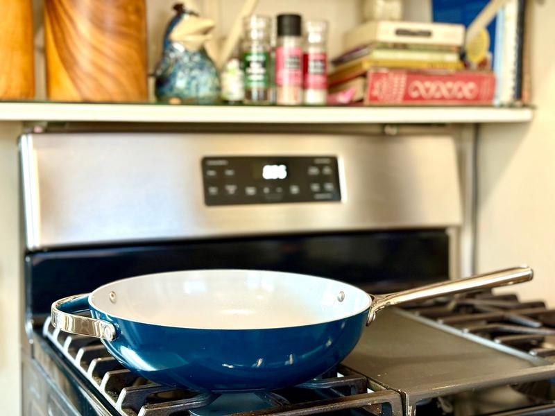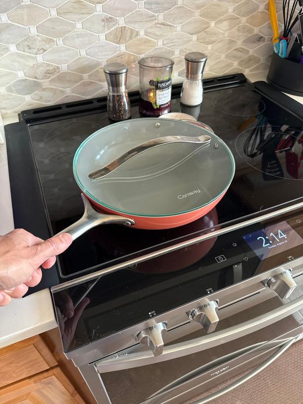 Lovely pan! Cooks evenly with no sticking. I wish Caraway made a 13 or 14 inch fry pan.