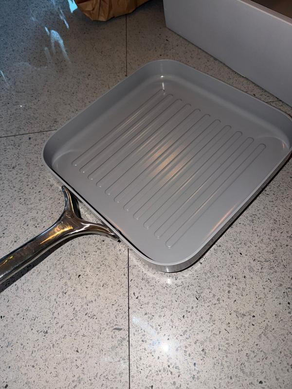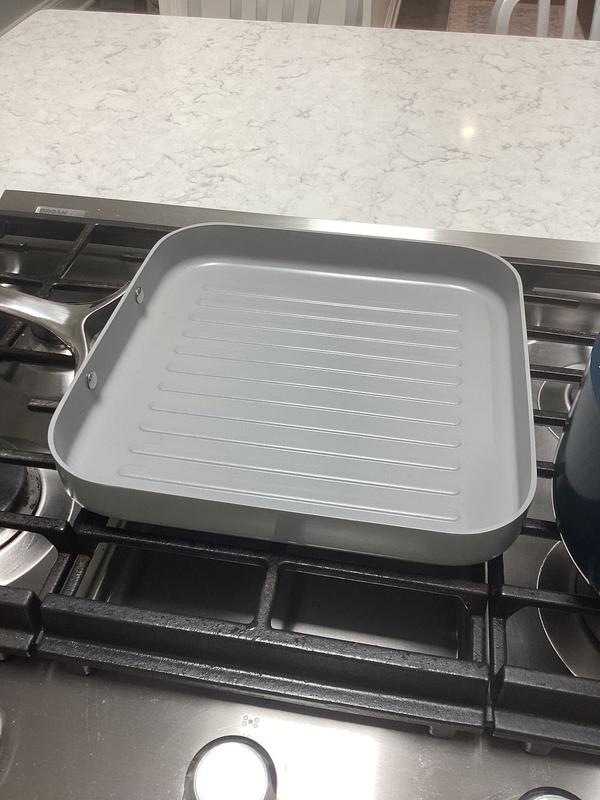 Purchased this grill pan to replace an older, teflon one. I have Caraway bakeware that I purchased about a year ago and really like the quality. Haven’t used the grill pan yet but I am looking forward to using it very soon. Side note- it’s quite heavy.