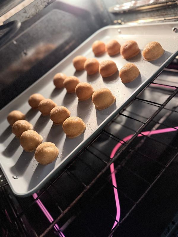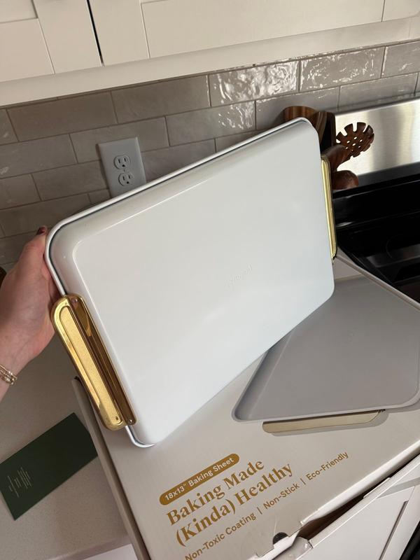 When y'all say nonstick, you sure mean it! I baked snickerdoodle cookies last night and they literally slid off the pan. I love the fact that it’s nonstick, the color is gorgeous and the size is so perfect! I was able to fit more cookies on this sheet than any others and there was no need for my silicone baking mat. I am seriously so impressed!