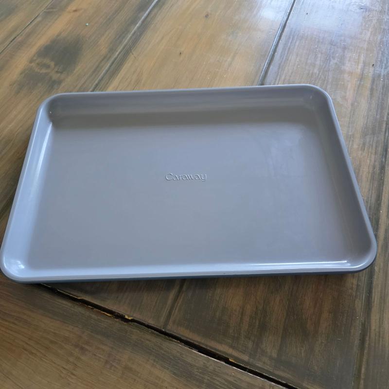 My wife has been desperately looking for a 15x10 baking pan that was not purely aluminum or chemically non-stick. It was not an easy task. We were thrilled to find this Caraway pan. The brownie recipe came out perfectly and the tradition was saved!
