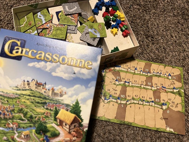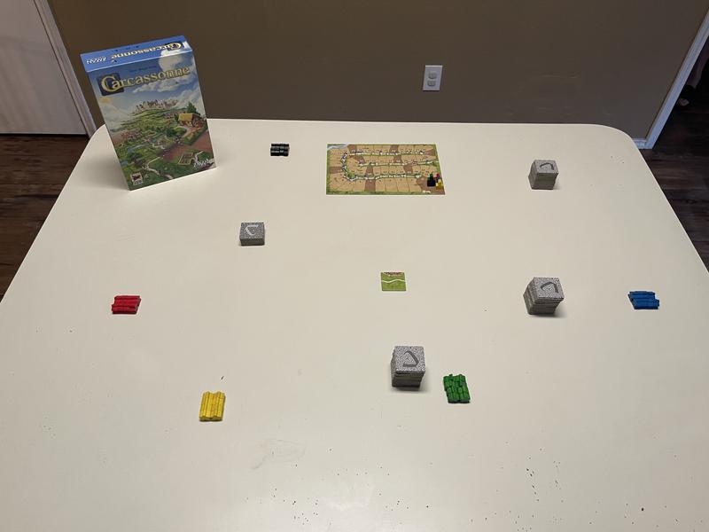 I received this game from Asmodee and Tryazon to give my honest opinion. We loved playing Carcassonne. It's a great gamer gateway game that helps people new to the hobby transition from classic and party games to some of the more intricate games. We've been playing strategy games for a while, but ever since the tiny person joined our party, it's harder and harder to bust out the long games. So a game like Carcassonne is really perfect for us: it plays in under an hour, was relatively easy to learn, and was super fun! I also really loved how the tiles fit neatly into the box.