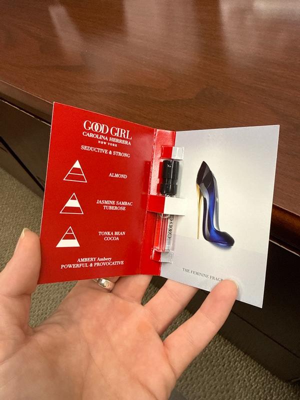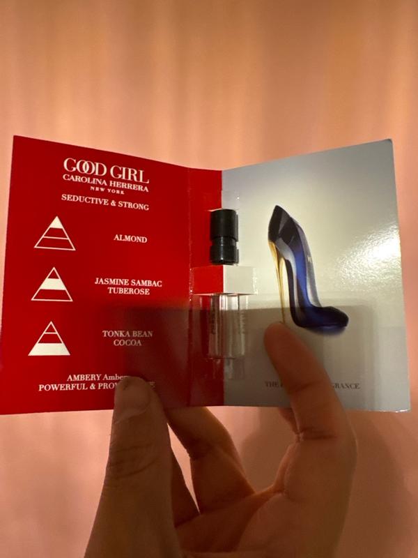 I tried the Good Girl perfume sample and I actually really like it. It smells sweet and classy, and it lasts longer than I expected for a tiny sample. The black and gold card makes it feel a little fancy too. It’s a perfect size to throw in your bag, and it honestly made me want the full bottle.