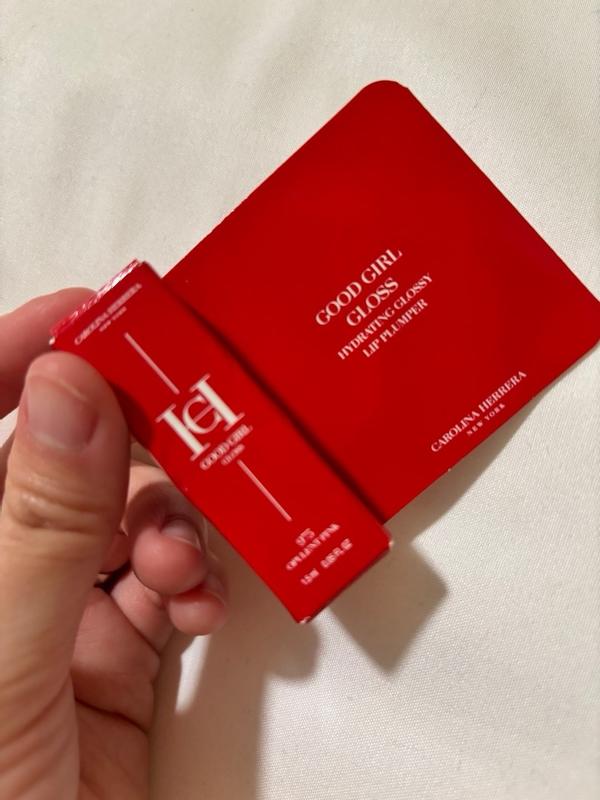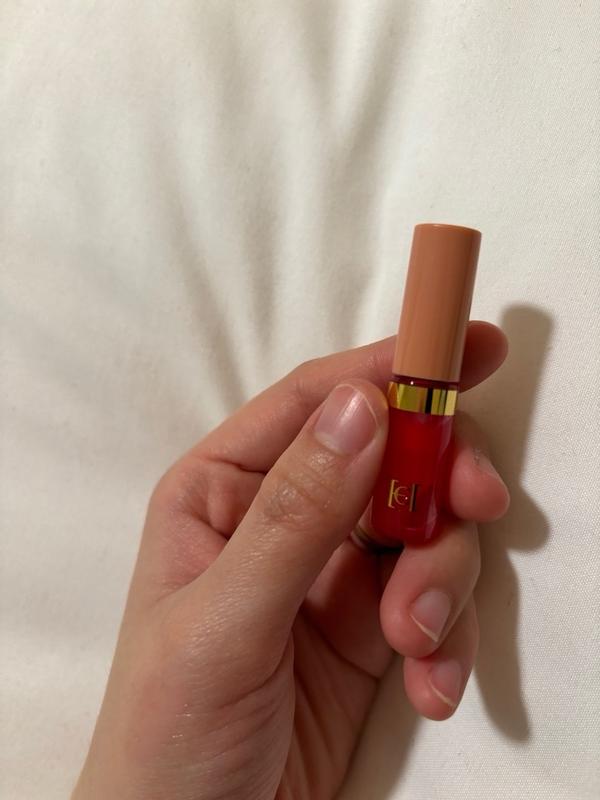 Instant hydration, with very high gloss. The sense is fresh mint with little bit of floral. It’s a really light sheer red color finished. It’s a sample size so it’s not much but can use up to 10 times.