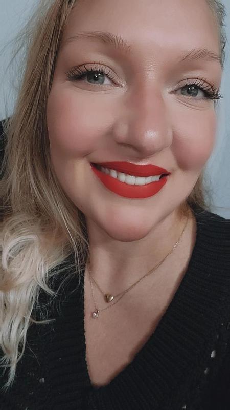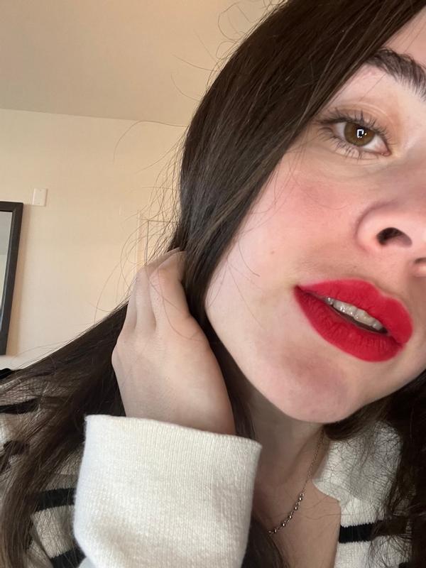 I have only worn red lipstick once before this review, I was a bit nervous/hesitant about applying this. That said, it was flawless! The liquid lipstick went on very smoothly, and in spite me having some dry skin on my lips, looked beautiful on (I was afraid the dry skin with be more visible with such a bold matte finish).