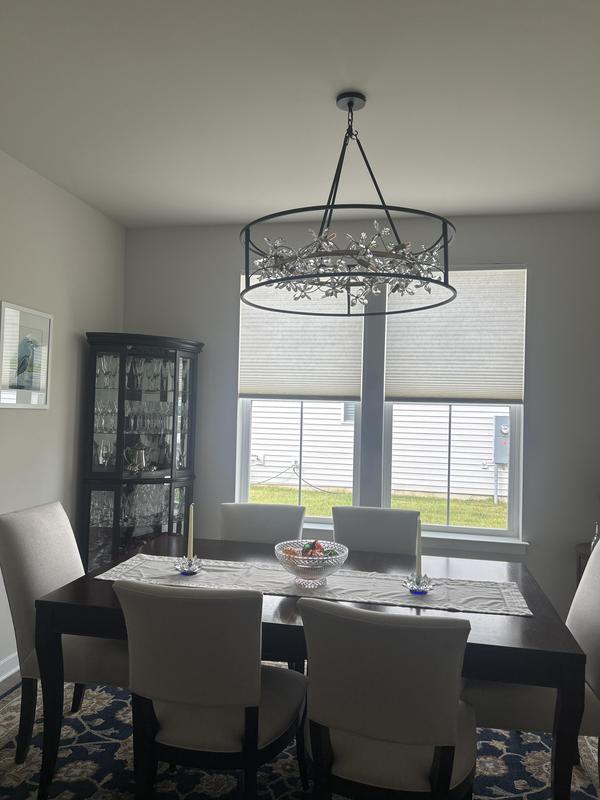Take nature-inspired decor to the next level with this contemporary round LED pendant light from Possini Euro Design. The open ring frame comes in a sand black finish, and inside is a riot of crystal buds on golden branches. Designed to take twelve bulbs, this dining room pendant light will bring maximum sparkle and style to your space.