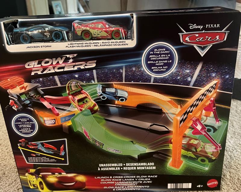 Disney Pixar Glow Racers Launch Criss-Cross Playset with 2 Glow-in-the-Dark Vehicles