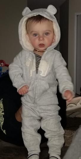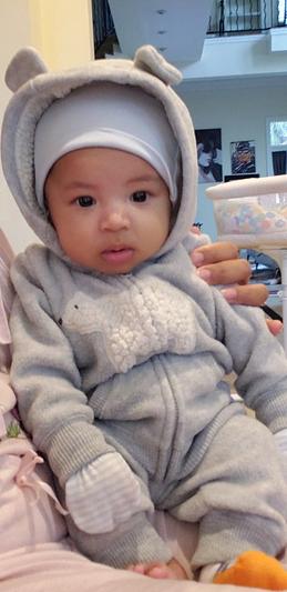 He loves his little bear outfit, he’s so cozy and warm❤️