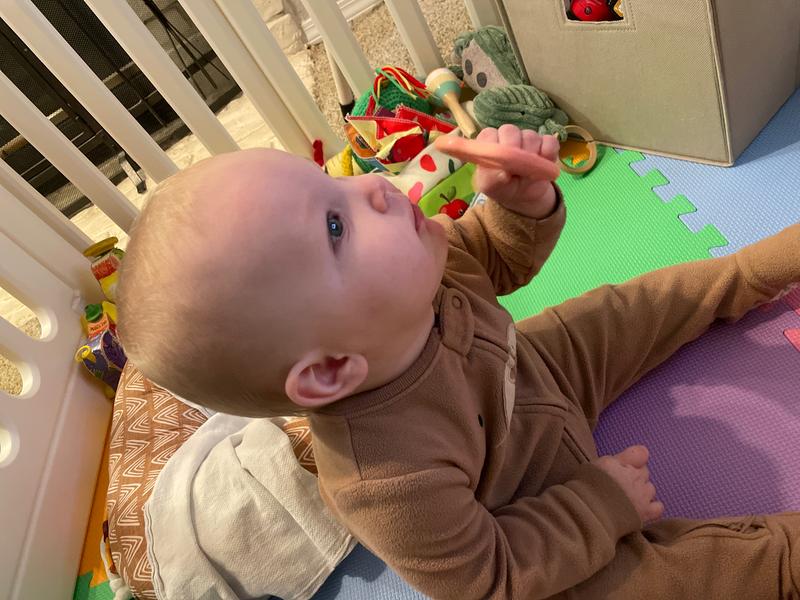 Bought this for my nephew who is very active. His mom loved the design and the warm soft fleece material, long front zipper for diaper changes and the soft grip slipper feet.