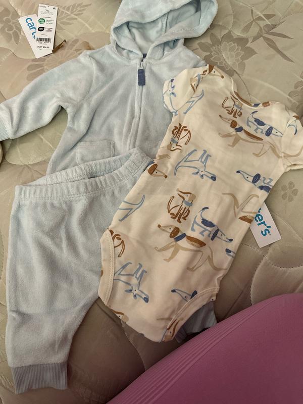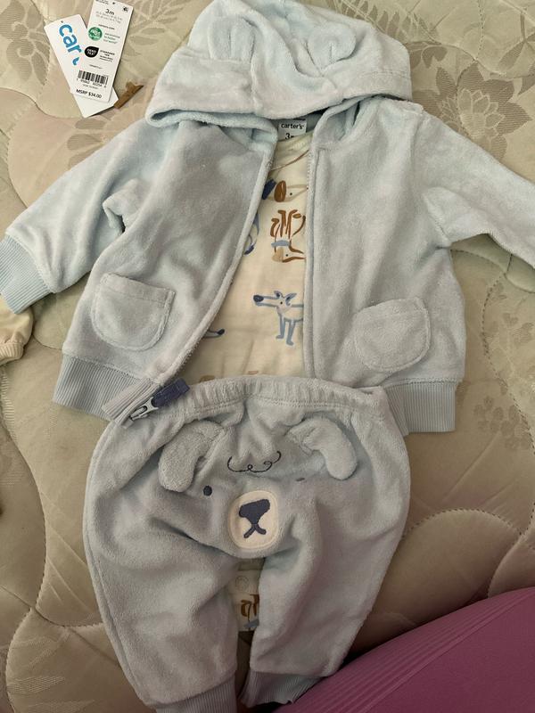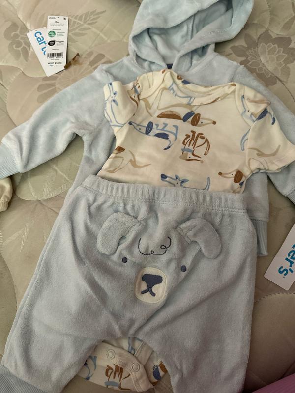 Baby Boys Dog Little Hooded Jacket, Bodysuit & Pants, 3 Piece Set