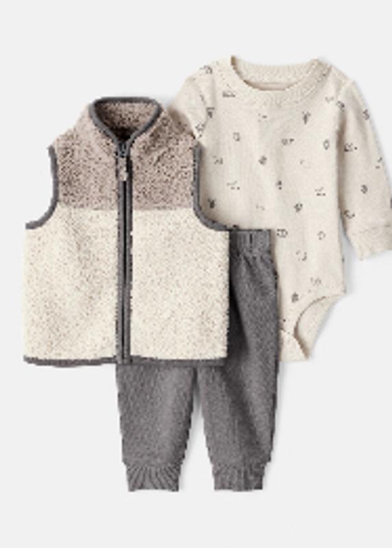 Baby Boys Faux-Sherpa Vest, Bodysuit & Pants, 3 Piece Set