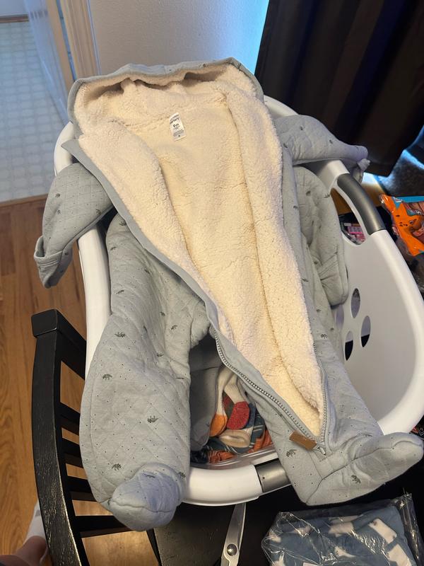 I love how this is not bulky, but perfect to keep the child warm and safe enough to wear while buckled in a car seat.