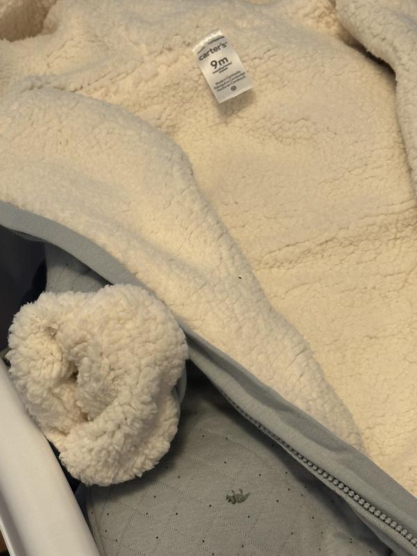 This is sherpa lined. Super soft and will be super warm this coming winter. I love the zipper down the leg vs snaps for easy diaper changes. I ordered this in both the 6m and 9m so my little can wear it all winter. Super happy with this purchase.