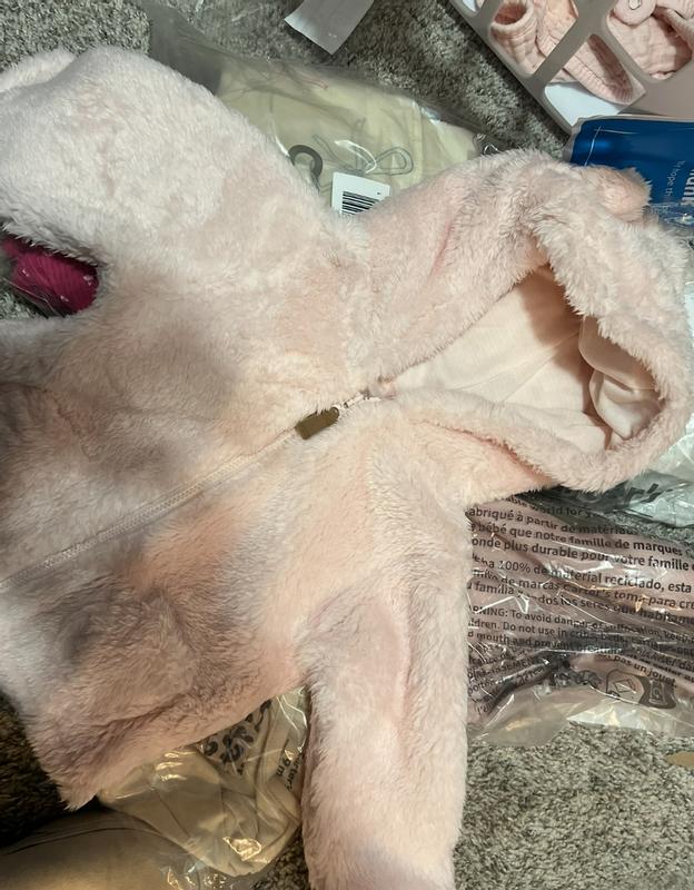 Purchased this adorable jacket for a new granddaughter. Love that it looks expensive, with a knit outer layer, but really wasn't.
