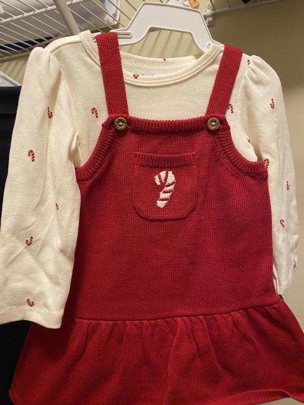 Baby Girls 2-Piece Candy Cane Print Long-Sleeve Bodysuit & Dress Set