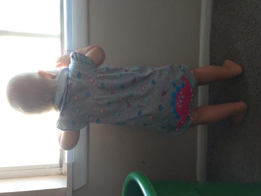 Super comfy romper that allowed my daughter to move freely, although the snaps make diaper changes more difficult. I love that there is a dinosaur print available for girls! I took one star off because the adorable Stegosaurus on the back is missing its thagomizer (famous four-spiked tail). Fact check your art, Carter's!