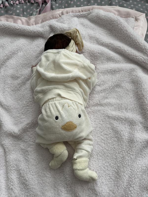 Super cute duck outfit again.Another great item for boy or girl.It is super cute and I love how it has matchy.Little booties.