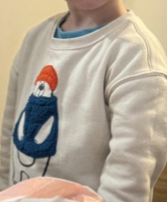 New look for winter this sweatshirt is easy to use for layering toddlers for the cold winter or for the fall with a simple short sleeve underneath. I loved the color and design it was a different look for winter nice and bright but with the White Sea lion to mark winter design a whole new way.