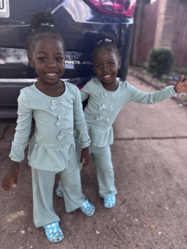 This outfit is absolutely adorable!! The top is absolutely precious with the three bows going down the front and the little pants are ribbed matching the top!! I can’t say enough about this outfit!