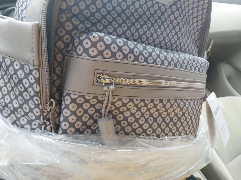 I bought this as a gift for my niece. She has twin boys and expecting a baby girl. I felt she needed an update to her diaper bag. This is super cute for having a baby girl but generic enough to use for the boys too. It is really well thought out. The wipe's fit on the outside for quick grab. It has a changing pad on the inside that matches for on the go. It has another roomy pouch on the outside and lots of space on the inside. I am very please and I know she will be also!
