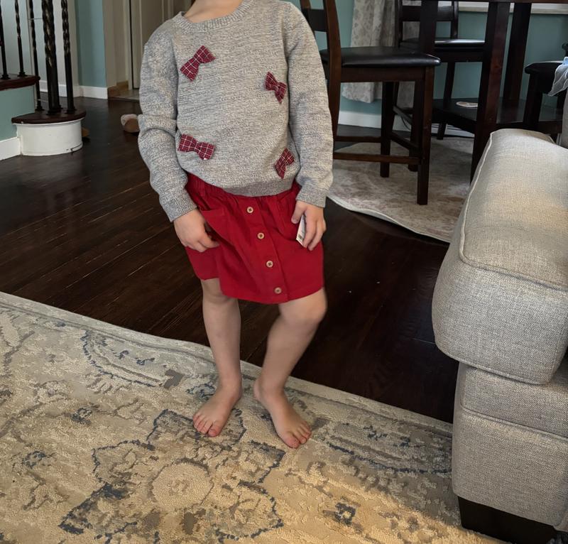 Love this sweater. So cute and festive. Looks great with the coordinating plaid skort.