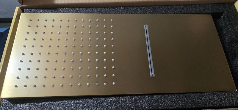 First impressions, I was impressed with the packing and also with the weight and quality of the pieces. The nickel finish is beautiful and looks high end. It includes 3 shower heads. Rainfall, 6 inch and hand held. The buttons can be used at the same time or separately. Water pressure is good even with all 3 on. This is my first rain shower at my home and it gives you the feeling of being in a luxury spa.