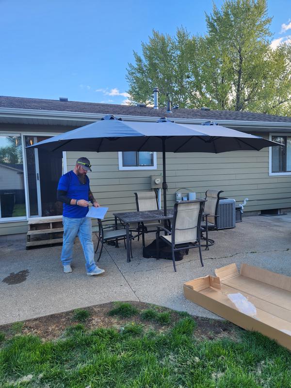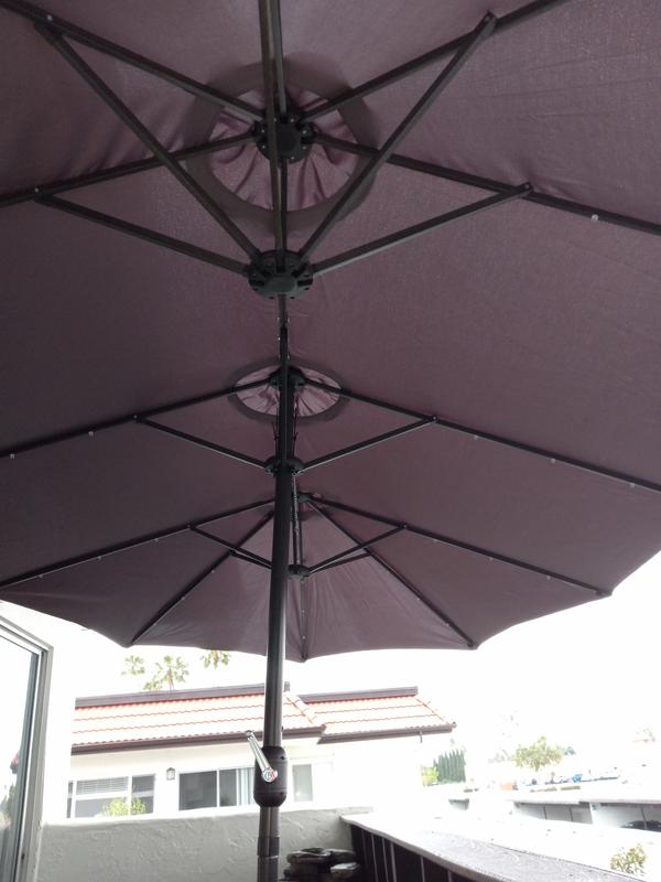 We bought your double umbrella last year and already needed to buy another one. It was ripping and the ends weren’t staying in thr little pockets. We constantly had to put them on as we opened it up. We decided to give it another try with lights this time. I sent you a pic via email and no one ever replied.