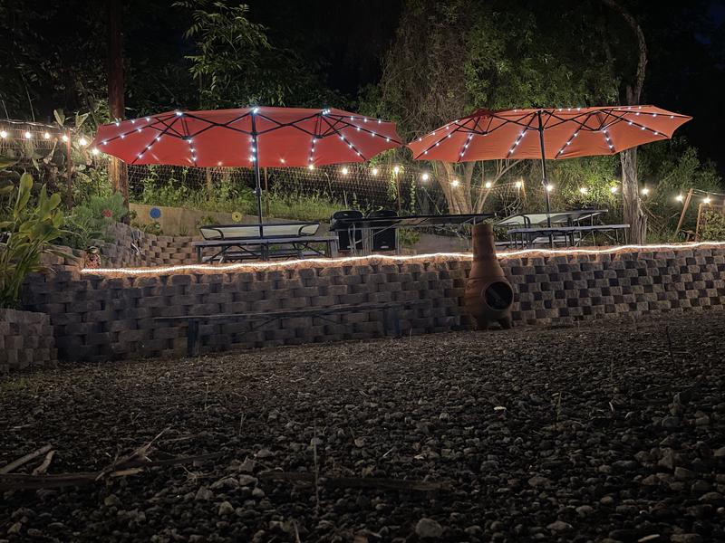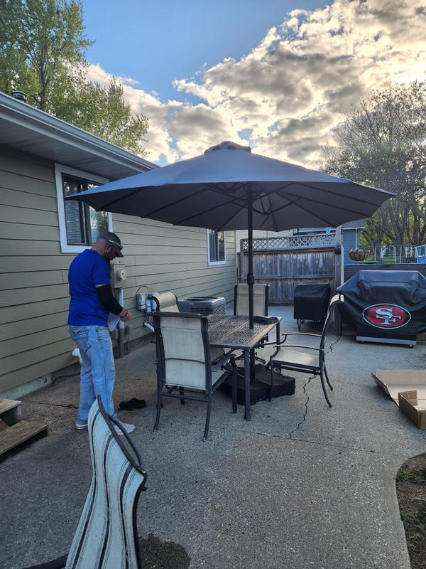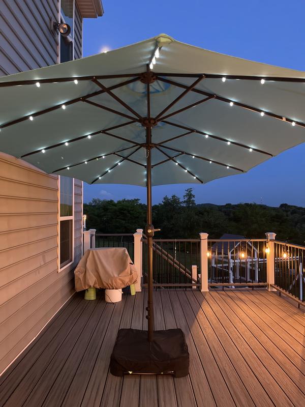 Love this umbrella and the attached solar lights make it even better! Word of caution- for such a big umbrella you have to close it up even when you are not expecting strong winds. I love the look of mine being up but left for the day and the wind caught it and tore it up. Totally my fault and a lesson learned to close it at the end of use!