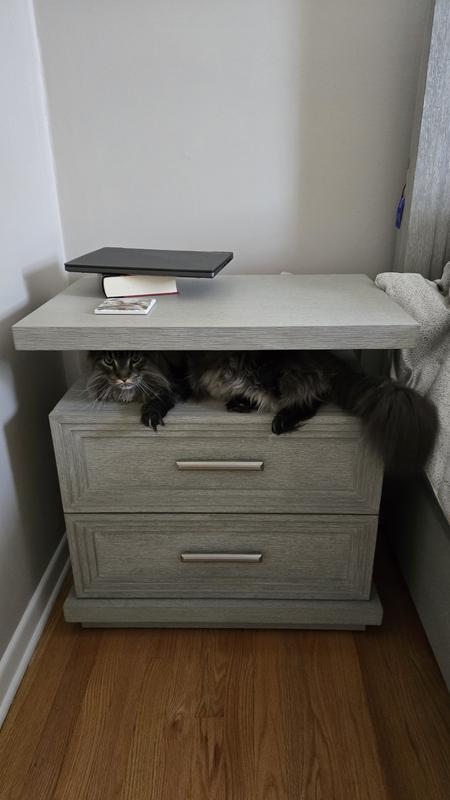 Two USB ports, under mount lighting that has 3 brightness levels, felt-lined top drawer and cedar line bottom drawer - this nightstand has everything and plenty of room on top for books, a lamp, and a cup of cocoa.