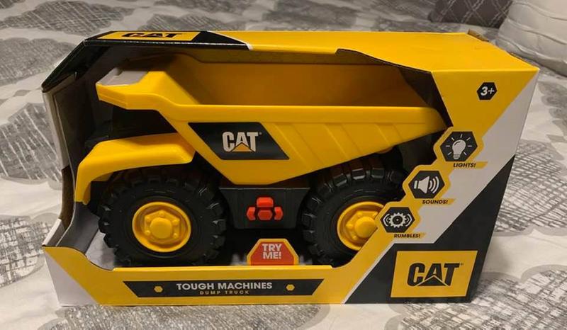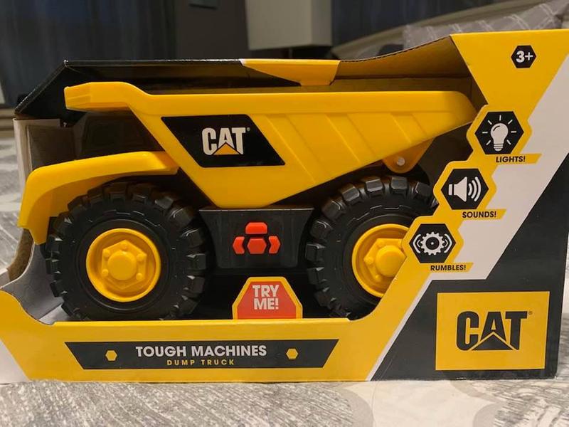 This CAT dump truck is such a cute look a like for kids! My son has been so fascinated with this truck since we got it! The bed lifts up and down just like the real deal and it makes a couple of different sounds to go with it!