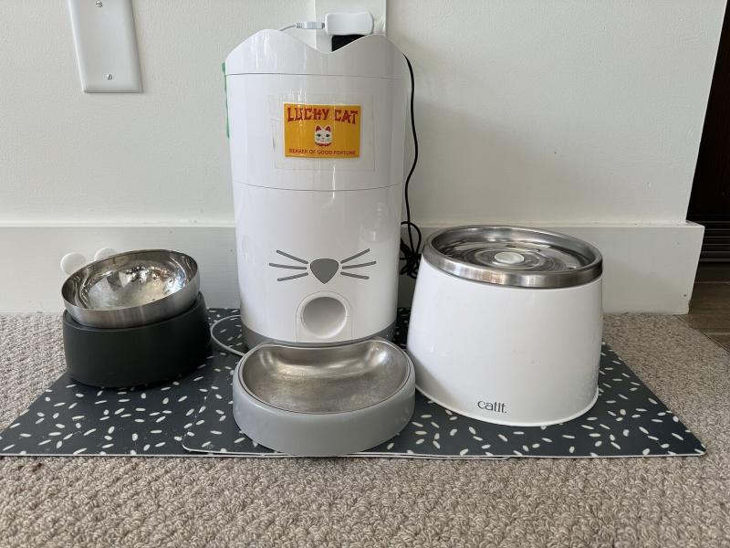 This would be a 5 star review if it was possible to have a slow feeder. My cat has no control over how fast she eats. So we end up not using this when we aren't out of town.