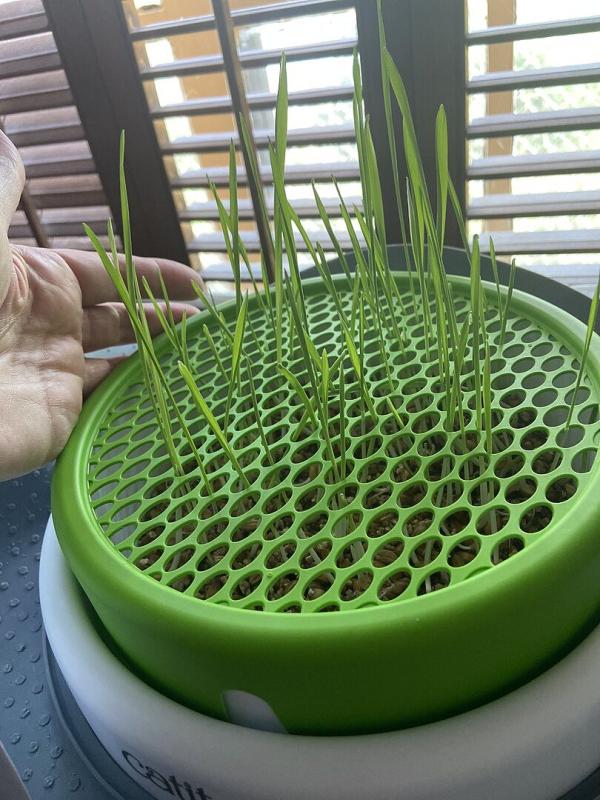 I followed the Pro Trick on the planting guide webpage (soaking the seeds overnight and sprouting them in a damp towel before adding them to the growing medium) and I soon had a planter full of grass. I bought it to keep my cats from chewing on my houseplants, and so far it seems to work. My cats love it.