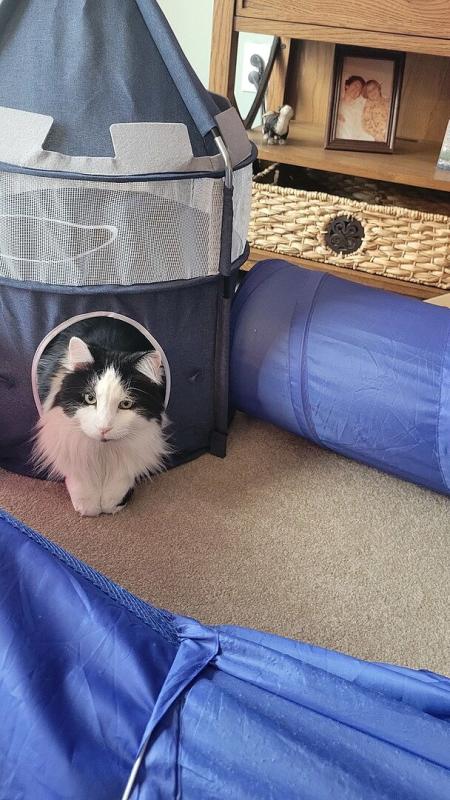 I originally was seeking replacement parts for my Catit water fountain but saw this on sale and purchased the castle along with the rocket and tunnel to connect together. The castle structure has 2 levels with peek holes large enough to jump through and a base with a sandbag ring and removable cushion to keep it upright. It’s held up by tent poles and is designed to be really sturdy in both structure and fabric. Set up was quick and easy if not self explanatory. While my kitten can topple it over by jumping from the side like a maniac, it pops right back up thanks to the base. The castle draw bridge can be closed like a door and the strings can be removed with Velcro (good if your cat likes to eat string). It’s fairly short, but both of my cats can sit in both levels comfortably with some wiggle room which is convenient as I was looking for something not too big. I love that it can be taken back down and stored away in a bag for both storage and travel (I live where we have hurricanes so this is excellent for evacuation or general travel!). My problem however lies with the pictures online and on the box indicating that it can be attached to the tunnel (separate purchase). There appears to only be 2 loops to connect the castle side entrance to the tunnel - one on the left and right, but none above or below the hole, so the tunnel isn’t firmly connected to the castle. The box and website has a picture indicating how the tunnel would connect via a loop and bar and shows one above the door - but in person this top loop is NOT there, nor is there one on the bottom. It’s strange as the separate rocket structure DOES have 4 loops to connect to the 4 bars on the tunnel, but the castle does not, and both are advertised to be able to connect to the tunnel with the same picture. Moreover, the tunnel only has one side with bars, so if you were to try to connect all 3, you’d still have one structure that was loop-to-loop and didn’t have bars. I’m not sure if this is a defect or an oversight, but it’s disappointing nonetheless. In hindsight, images of the castle itself don’t seem to have a top and bottom loop on the side entrance… the ‘connection’ image is identical to that seen on the rocket structure’s advertisement and is probably a reused image from the that. It’s really misleading as you’d imagine that if they show a picture of it connecting, that you’d assume it connects as literally advertised. I managed to tie the loops of the tunnel and castle together with some string, maybe later I’ll try and sew my own top and bottom loops for better stability. Overall while it’s cute and sturdy, it’s a huge disappointment as the connectability was the main motivation for me purchasing more than one product.