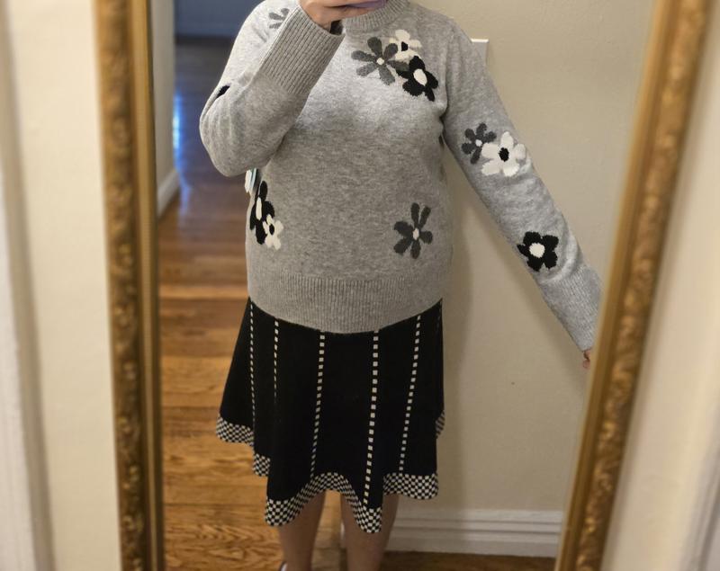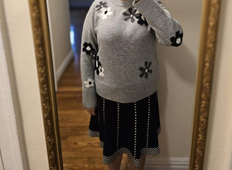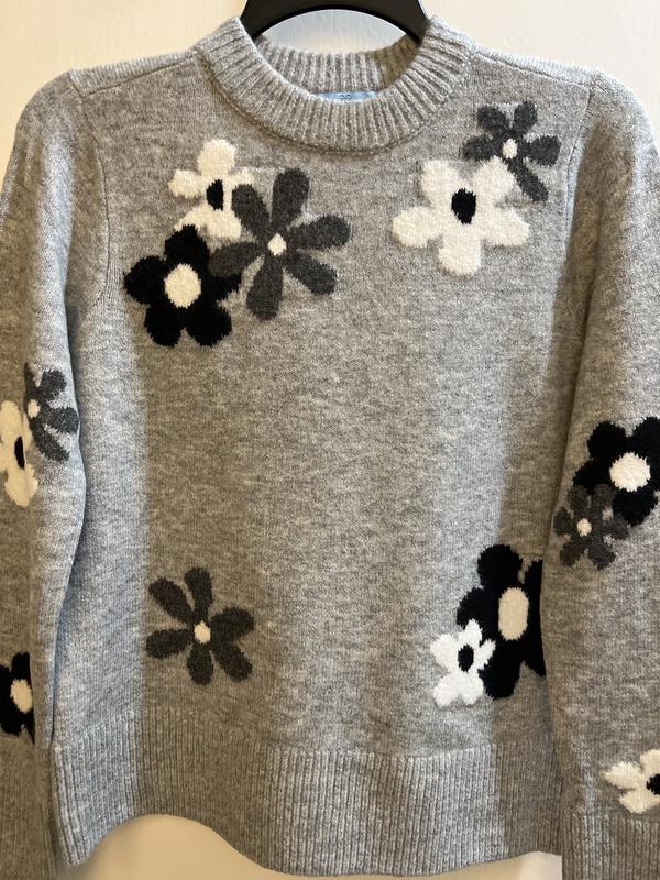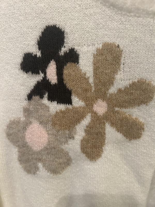 I love, lovel, love this sweater! I can hardly wait for cold weather to wear it. Love the fit along with the flower design.