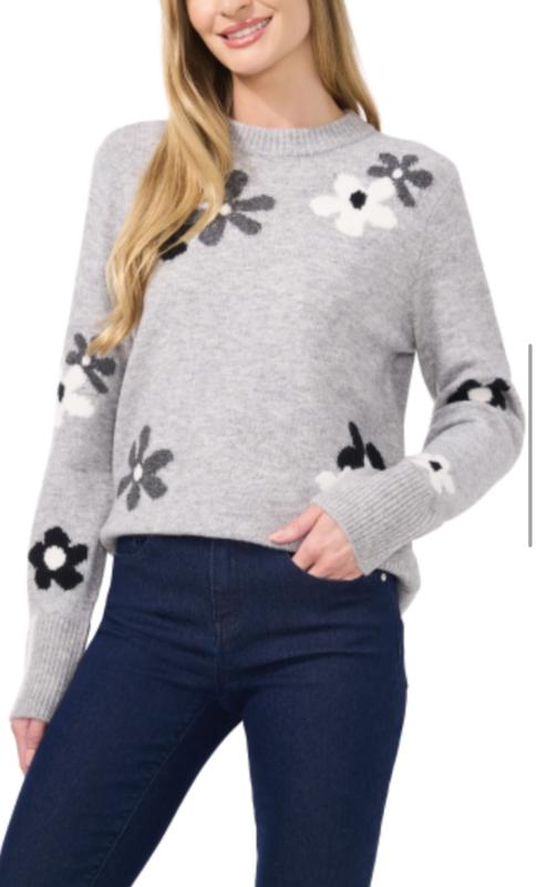 Women's Crewneck Flower Patterned Knit Long-Sleeve Sweater
