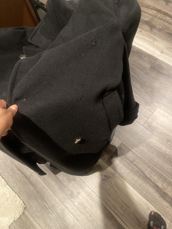 Overall I’m pleased with the coat it was exactly what I was looking for. The reason I can’t give 5 stars is that the first day I wore it one of the buttons fell off luckily I heard it hit the ground and picked it up. I sewed it back on and went out to dinner and it fell off again. I’m not crazy about the style of the buttons so I’m going to have them all replaced with plain buttons at the dry cleaners. Hopefully they will stay on.